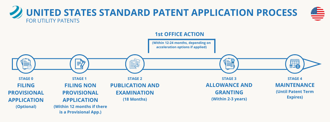 When preparing to apply for a patent in the United States, it’s crucial to understand the patent filing process as a whole. Understanding the timeline, from filing, to publication, examination, and finally grant, is crucial for managing expectations.